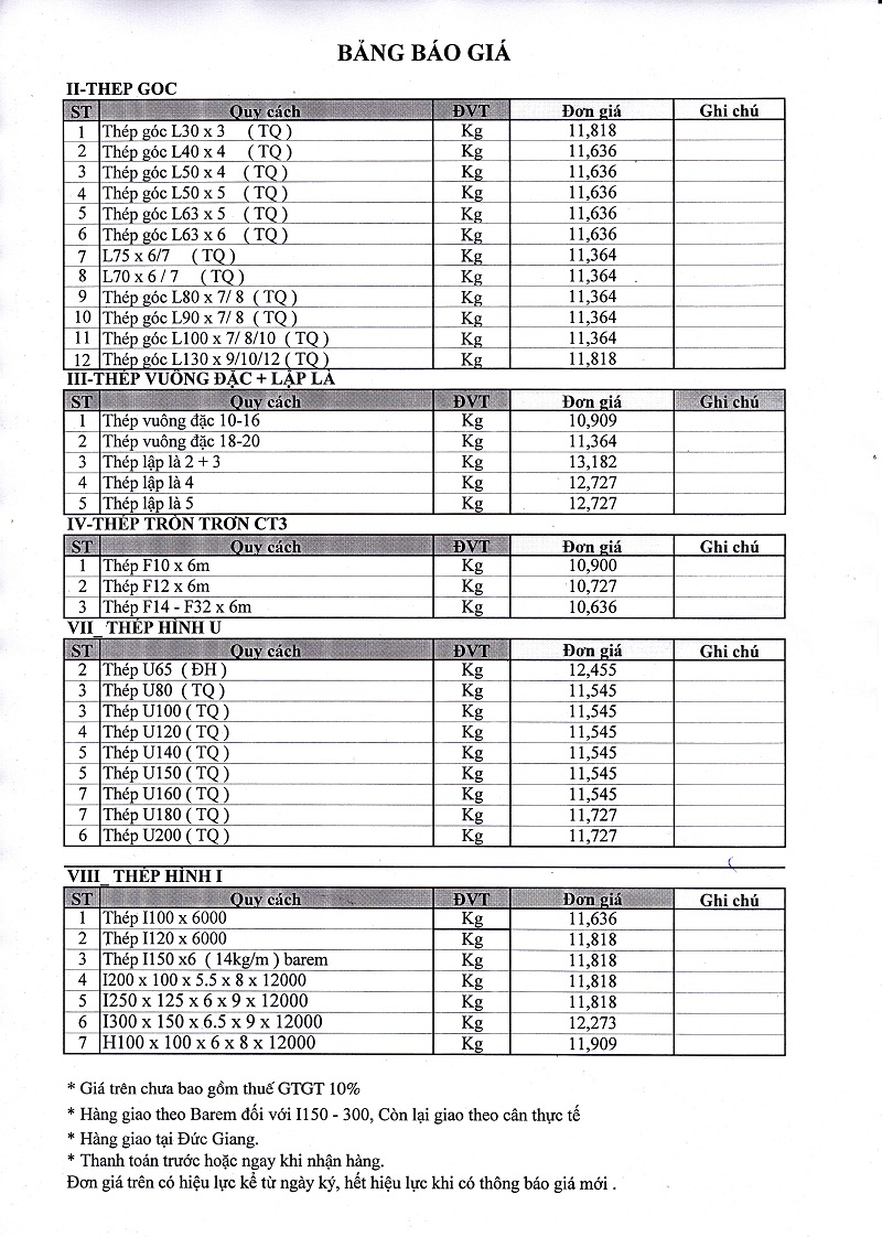 Đơn giá sắt thép dưới đây chỉ mang tính chất tham khảo, để được tư vấn và báo giá chính xác, Quý khách vui lòng gọi bộ phận kinh doanh.